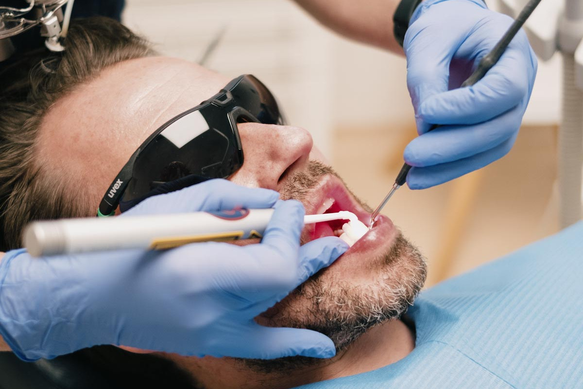 photodynamische Therapie bei Entzündungen des Zahnbetts (Parodontitis), bei entzündeten Implantaten (Periimplantitis), zur Desinfektion von Wurzelkanälen, zur Förderung der Wundheilung